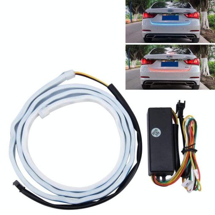 1.2m Car Auto Waterproof Universal Four Color Rear Flowing Light Tail Box Lights with Tail Light Controller, Ice Blue Light Driving Light, White Light Reversing Light, Red Light Brake Light, Yellow Light Turn Signal Light, LED Lamp Strip Tail Decoration