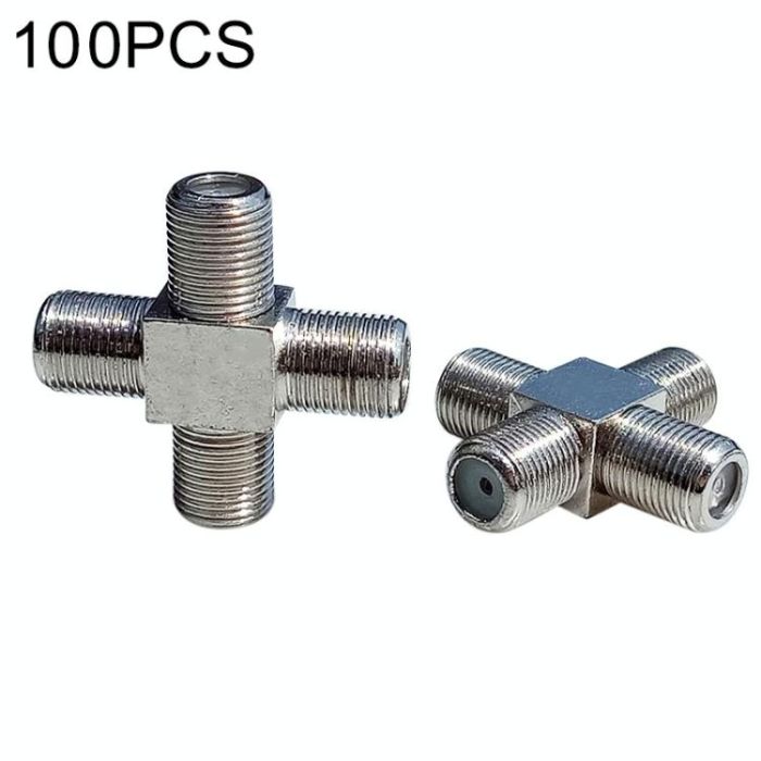 100 PCS 1 F Female to 3 F Female Jack 4 Way F Splitter TV Coax Adapter Connector