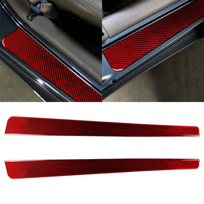 2 in 1 Car Carbon Fiber Threshold Sticker for Chevrolet Corvette C5 1998-2004, Left Drive(Red)