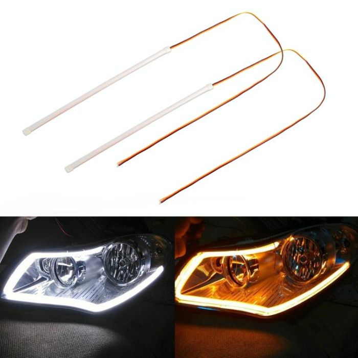 2 PCS 30cm DC12V 3.2W Ultra-thin Car Auto Double Colors Turn Lights / Running Lights (Turn Lights: Yellow Light; Running Lights: White Light)