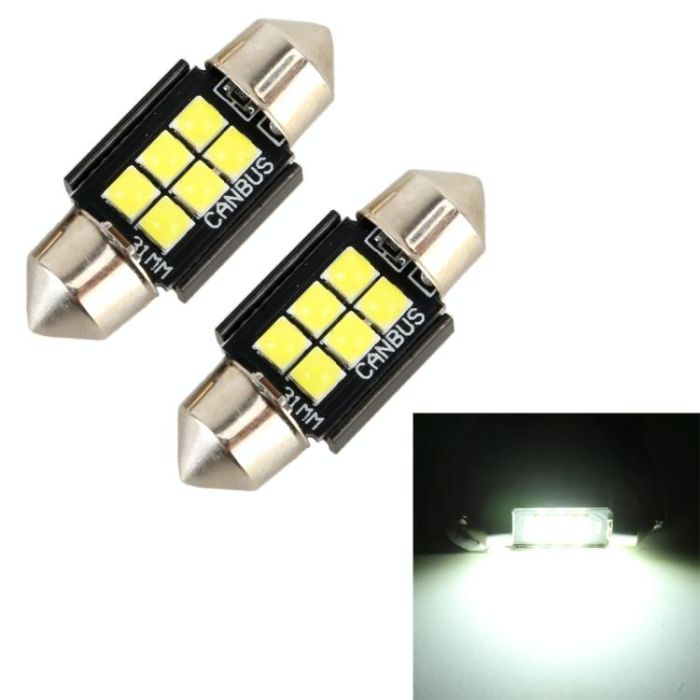 2 PCS 31mm DC12V / 2.5W / 6000K / 170LM 6LEDs SMD-3030 Car Reading Lamp Dome Light