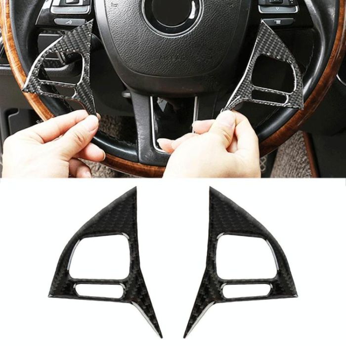 2 PCS Car Carbon Fiber Steering Wheel Button Decorative Sticker for Volkswagen Touareg 2011-2018