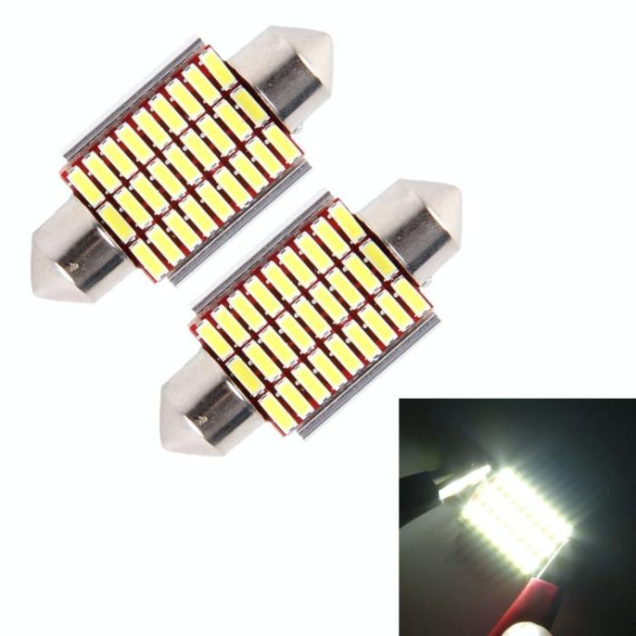 2 PCS DC 12V 6W 36MM Bicuspid Car Door Lamps Registration Mark light Dashboard Dome Door Lights LED Reading Lamp with 27 LED SMD 3014 Lights White