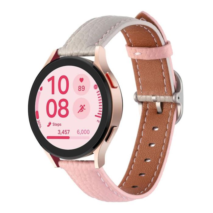 20mm Litchi Texture Square Buckle Genuine Leather Watch Band(Gray+Pink)