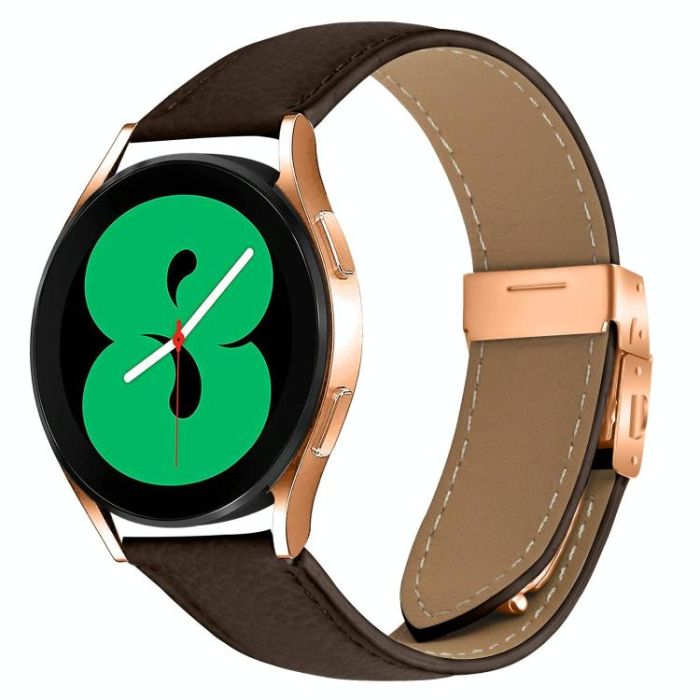 20mm Lychee Texture Rose Gold Turtle Back Buckle Leather Watch Band(Coffee Color)