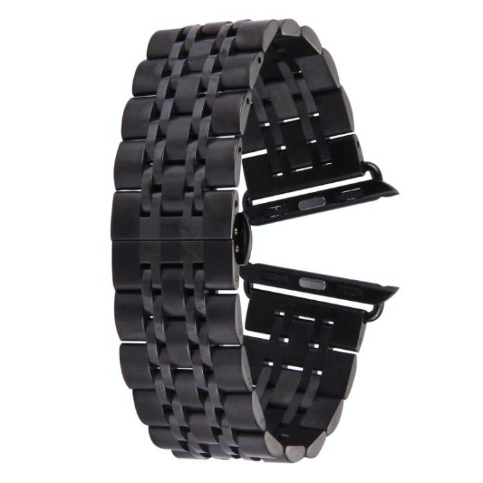 20mm Women Hidden Butterfly Buckle 7 Beads Stainless Steel Watch Band For Apple Watch 38mm(Black)