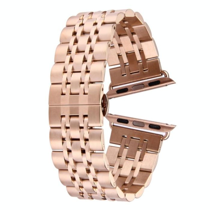 Description / 20mm Women Hidden Butterfly Buckle 7 Beads Stainless Steel Watch Band For Apple Watch 38mm(Rose Gold)