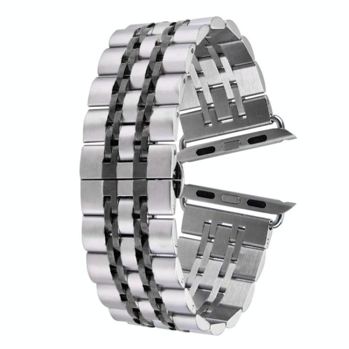 Description / 20mm Women Hidden Butterfly Buckle 7 Beads Stainless Steel Watch Band For Apple Watch 38mm(Silver+Black)