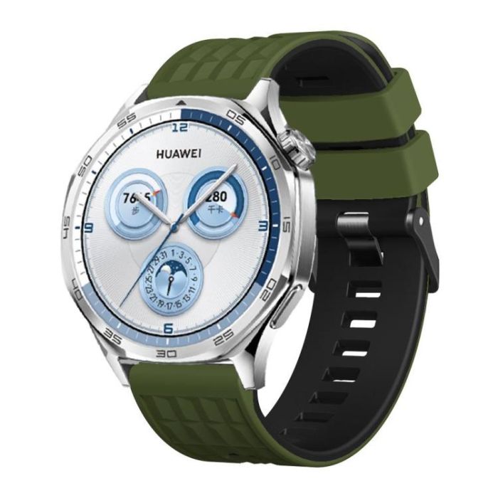 22mm Angular Two Color Silicone Watch Band(Army Green Black)