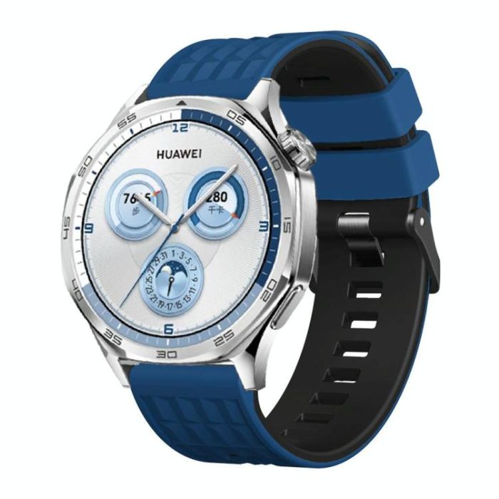 22mm Angular Two Color Silicone Watch Band(Royal Blue Black)