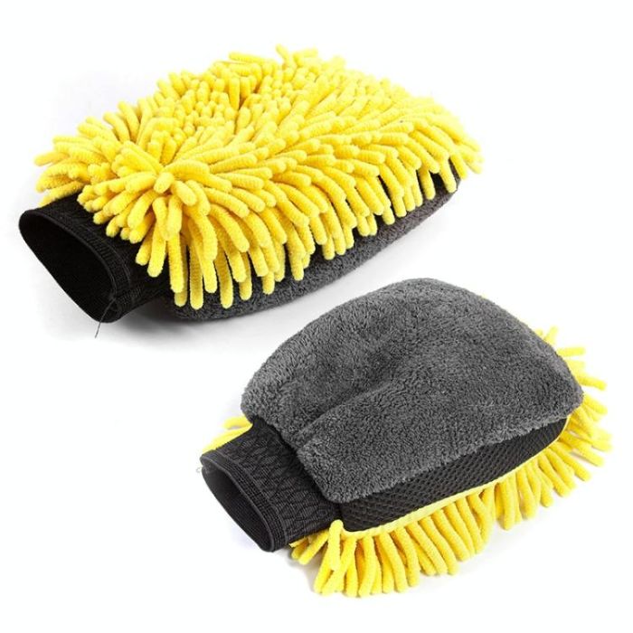 2pcs Car Chenille Coral Fleece Car Wash Double Sided Thick Gloves(Yellow)