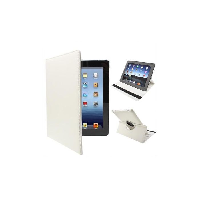 360 Degree Rotatable PU Leather Case with Sleep / Wake-up Function & Holder for New iPad (iPad 3) / iPad 2 / iPad 4, White(White)