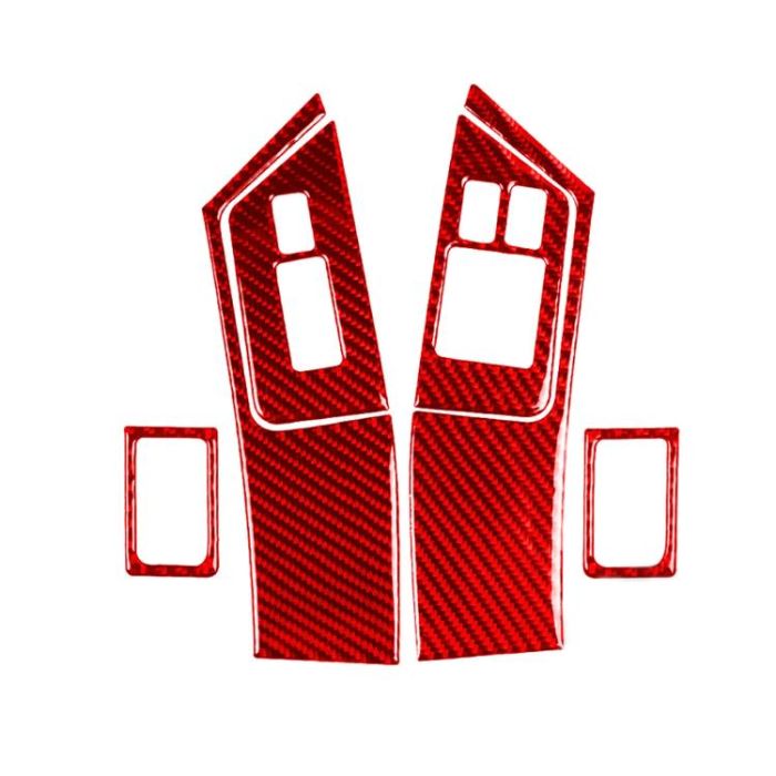 6 PCS / Set Carbon Fiber Car Window Lift Button Door Lock Decorative Sticker for Nissan GTR R35 2008-2016, Right Driving (Red)