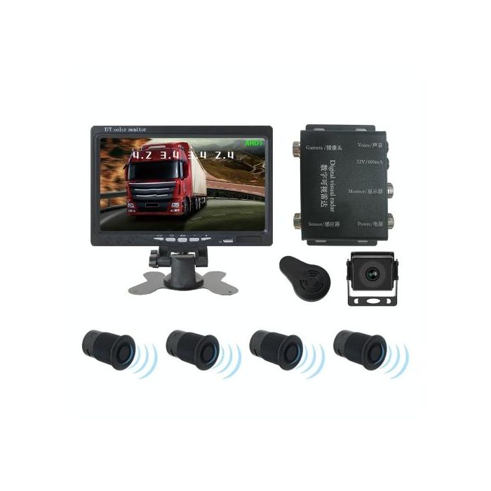Packing list: - 7-inch AHD display x 1 - AHD camera x 1 - Digital radar host x 1 - 10-meter aerial video cable x 1 - Buzzer x 1 - Digital probe x 4 - Cable x 5