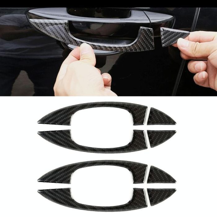 8 PCS Car Carbon Fiber Door Inner and Outer Handle Panel Decorative Sticker for Volkswagen Touareg 2011-2018
