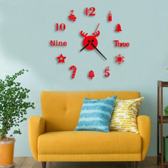Acrylic 3D Wall Clock DIY Living Room Bedroom Wall Background Decoration(Red)