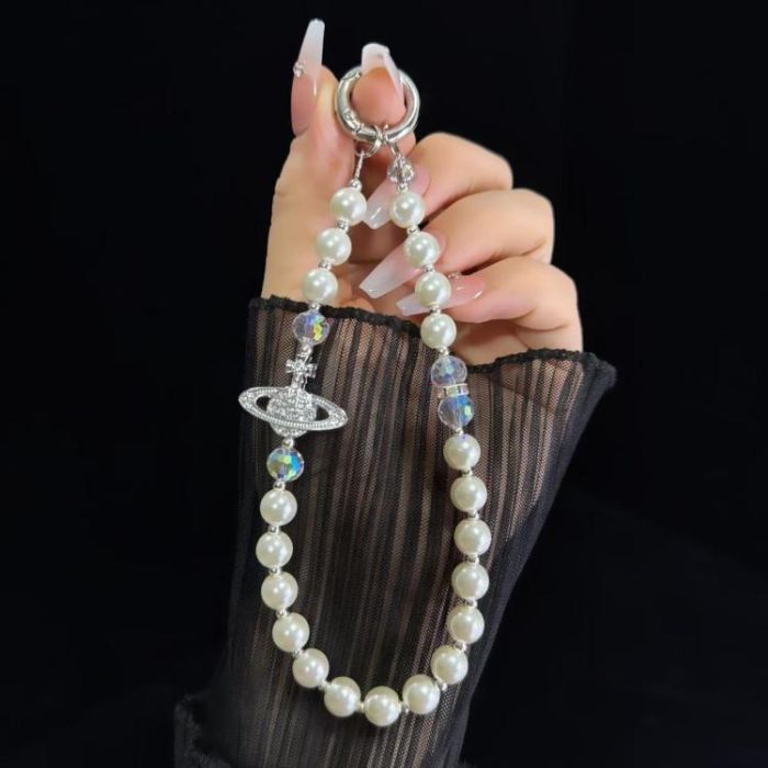 Alloy Saturn Crystal Pearl Phone Chain(Argent)