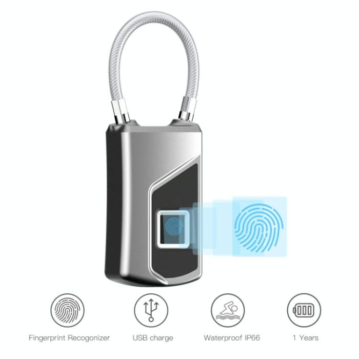 Anytek USB Charging Waterproof Anti-theft Non-password Electrically Intelligent Fingerprint Padlock Size:3.2cm × 3.5cm × 9cm