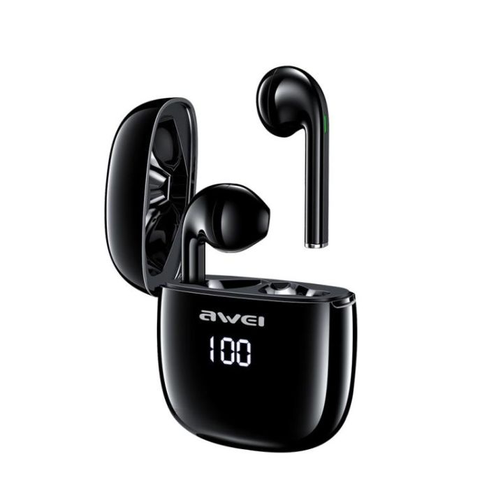awei T28P Bluetooth V5.0 TWS Ture Wireless Sports LED Display Headset with Charging Case(Black)