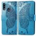 Butterfly Love Flowers Embossing Horizontal Flip Leather Case For LG W30 with Holder & Card Slots & Wallet & Lanyard(Blue)