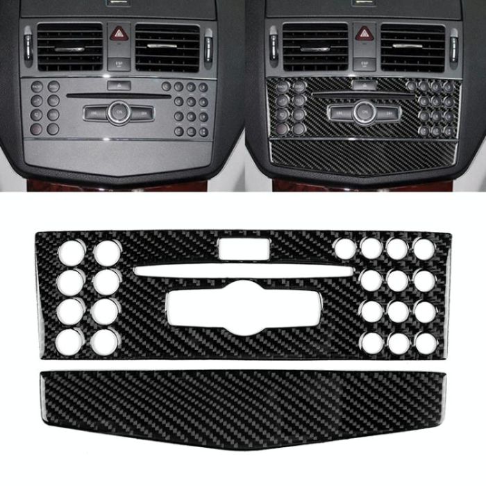 Car Carbon Fiber Center Console Panel Decorative Sticker for Mercedes-Benz W204 C Class 2007-2010