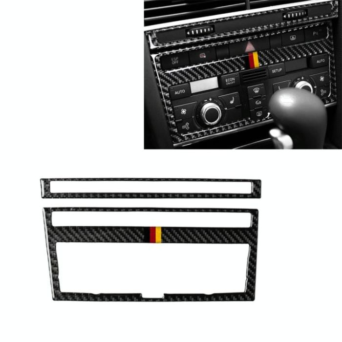 Car Carbon Fiber German Flag Color Air Conditioning CD Panel Decorative Sticker for Audi A6 2005-2011, Left and Right Drive Universal