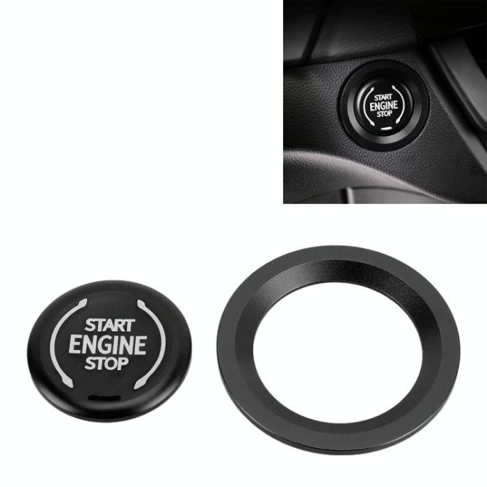 Car Engine Start Key Push Button Ring Trim Metal Sticker Decoration for Cadillac CT5 CT4 XT4 XT6 / Chevrolet Silverado (Black)