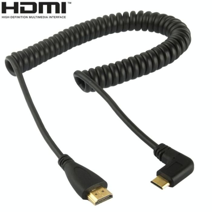 1.4 Version Gold Plated Mini HDMI Male to HDMI Male Coiled Cable, Support 3D / Ethernet, Length: 0.6m-2m