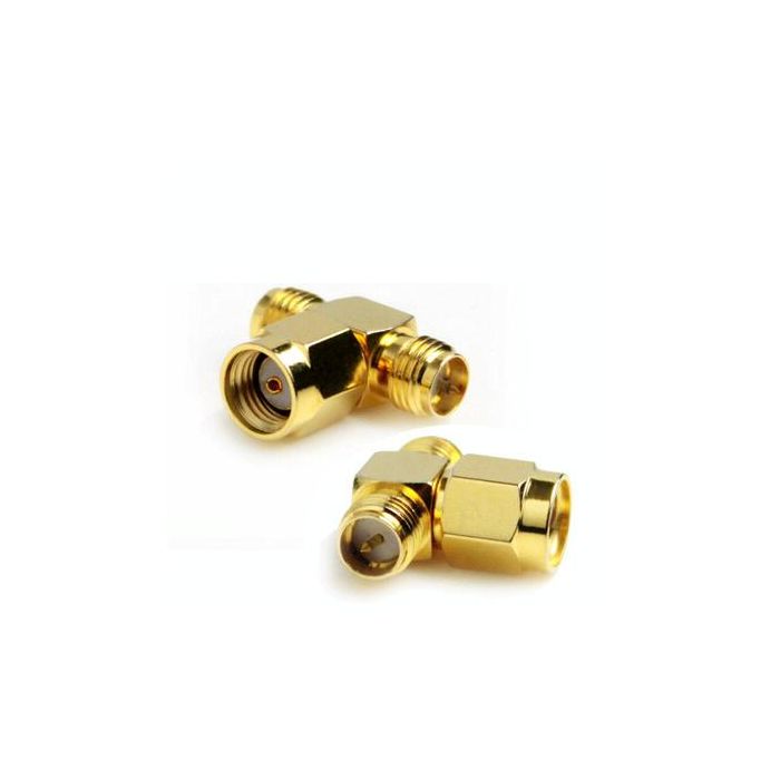 RP-SMA Male to 2 RP-SMA Female Adapter (T Type), Gold Plated