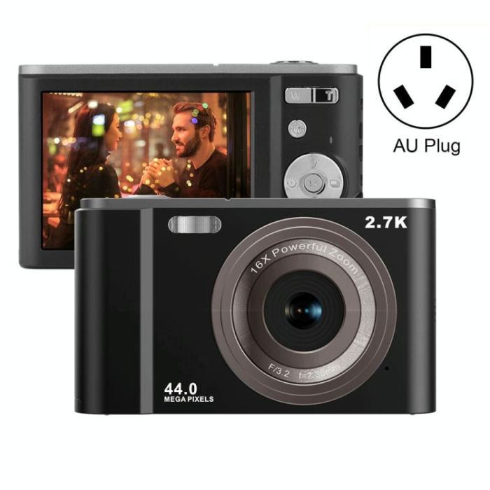 DC302 2.88 inch 44MP 16X Zoom 2.7K Full HD Digital Camera Children Card Camera, AU Plug (Black)