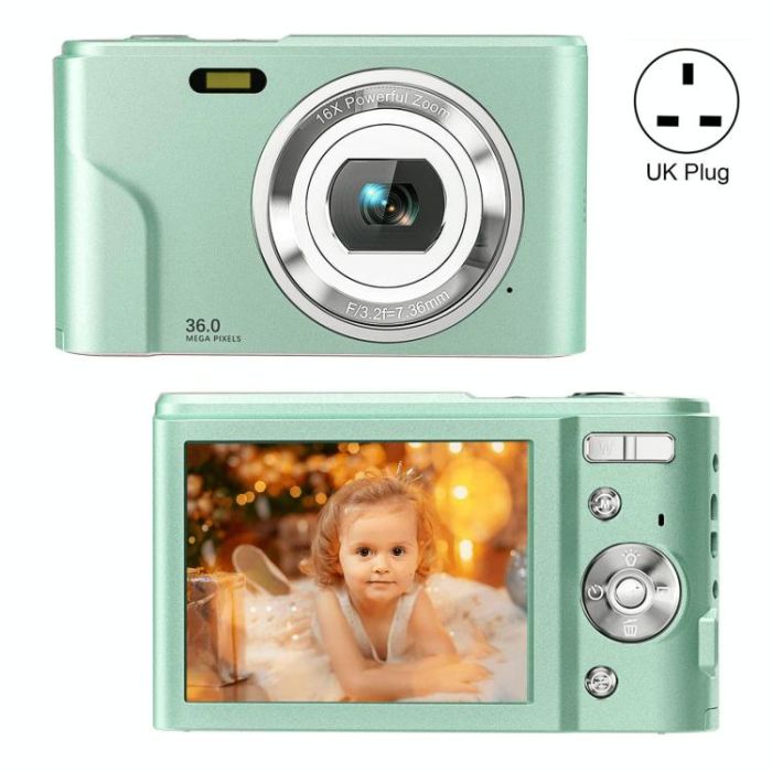 DC311 2.4 inch 36MP 16X Zoom 2.7K Full HD Digital Camera Children Card Camera, UK Plug (Green)