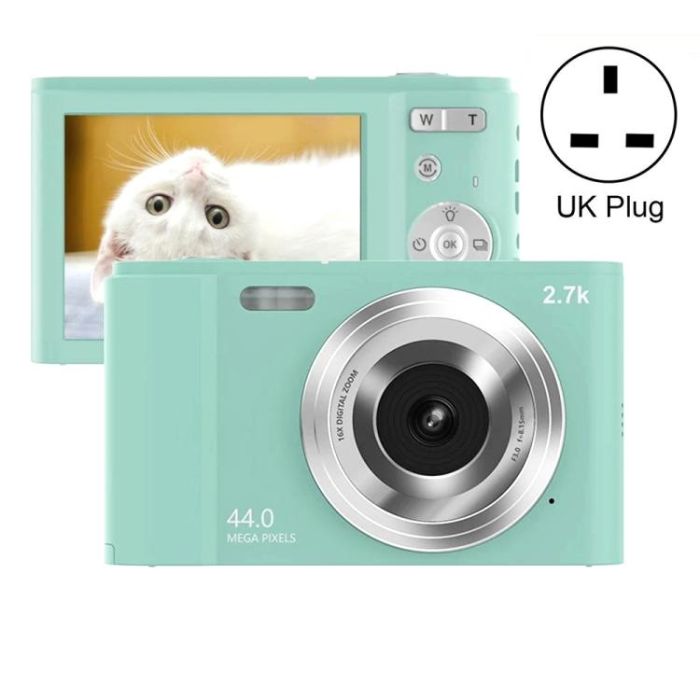 DC302 2.88 inch 44MP 16X Zoom 2.7K Full HD Digital Camera Children Card Camera, UK Plug (Green)