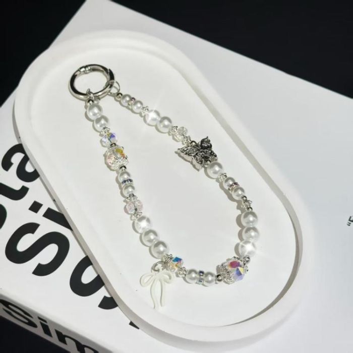 Diamond-Encrusted Pearl Butterfly Phone Chain(White)