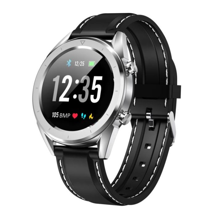 DT28 1.54inch IP68 Waterproof Silicone Strap Smartwatch Bluetooth 4.2, Support Incoming Call Reminder / Blood Pressure Monitoring / Watch Payment(Black Silver)