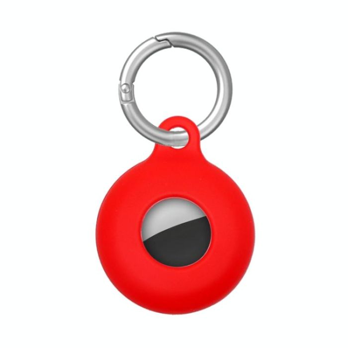 Dual-Side Hollow Anti-scratch Silicone Shockproof Protective Cover Case with Keychain Hook Loop For AirTag(Red)