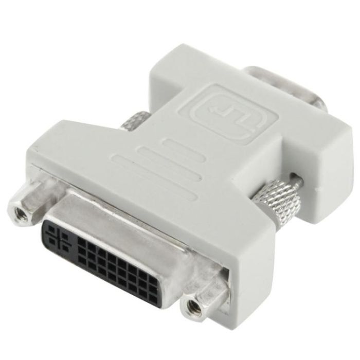1) The DVI-I Female to VGA Male converts a DVI-I cable connector into a VGA connector. This also lets you use a DVI-I with your VGA-only computer. To ensure compatibility, please make sure that any DVI cable connected to this adapter has the 4 additional pins on the side of the DVI connector next to the flat pin, as shown in the left hand side of the DVI picture.