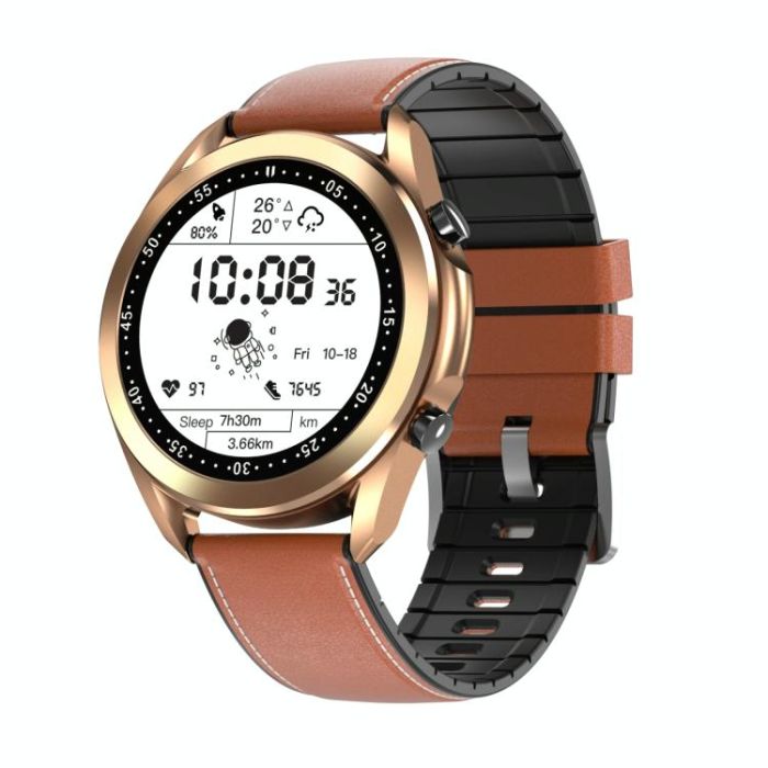 DW95 1.28 inch Color Screen Smart Watch, IP67 Waterproof,Leather Watchband,Support Bluetooth Call/Heart Rate Monitoring/Blood Pressure Monitoring/Blood Oxygen Monitoring/Sleep Monitoring(Gold)
