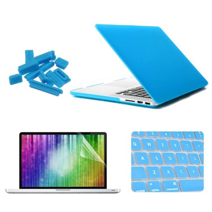 ENKAY for MacBook Pro Retina 13.3 inch (US Version) / A1425 / A1502 4 in 1 Frosted Hard Shell Plastic Protective Case with Screen Protector & Keyboard Guard & Anti-dust Plugs(Blue)