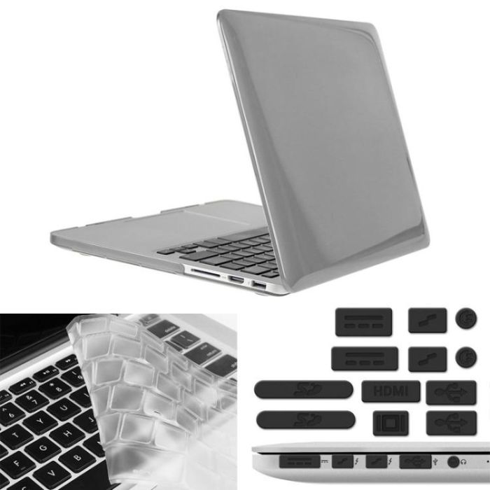 ENKAY for Macbook Pro Retina 15.4 inch (US Version) / A1398 Hat-Prince 3 in 1 Crystal Hard Shell Plastic Protective Case with Keyboard Guard & Port Dust Plug(Grey)