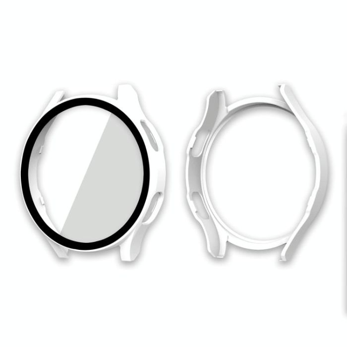 ENKAY Hat-Prince Full Coverage PC Frame + Tempered Glass Protector Composite Case for Samsung Galaxy Watch4 44mm(White)