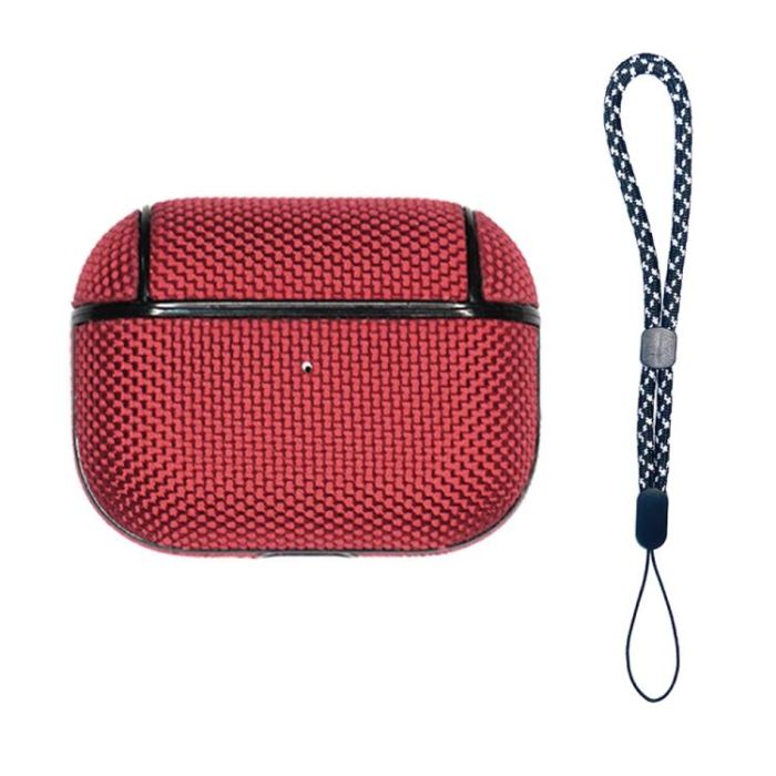 For AirPods Pro 2 Nylon Waterproof Wireless Earphone Case with Lanyard(Red)