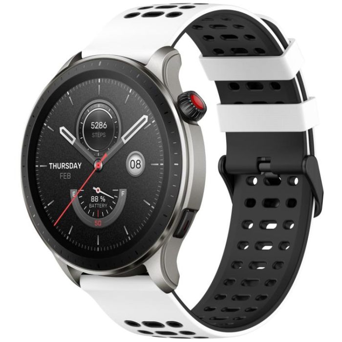 For Amazfit Watch 22mm Three Rows Hole Two Color Silicone Watch Band(White+Black)