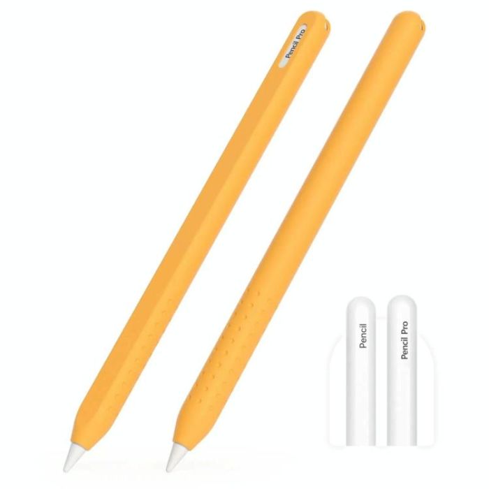 For Apple Pencil 2 / Pro Integrated Anti-roll Silicone Protective Stylus Pen Case(Yellow)