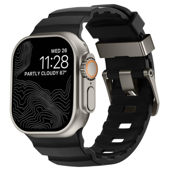 For Apple Watch 46mm / 49mm / 45mm / 44mm Wild Path Grey Buckle Thickened Silicone Watch Band(Black)