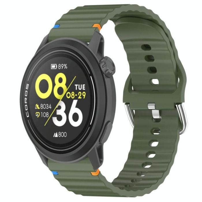 For COROS Pace 3 Wavy Grain Stitched 22mm Silicone Watch Band(Army Green)