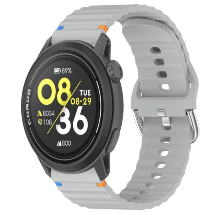 For COROS Pace 3 Wavy Grain Stitched 22mm Silicone Watch Band(Gray)
