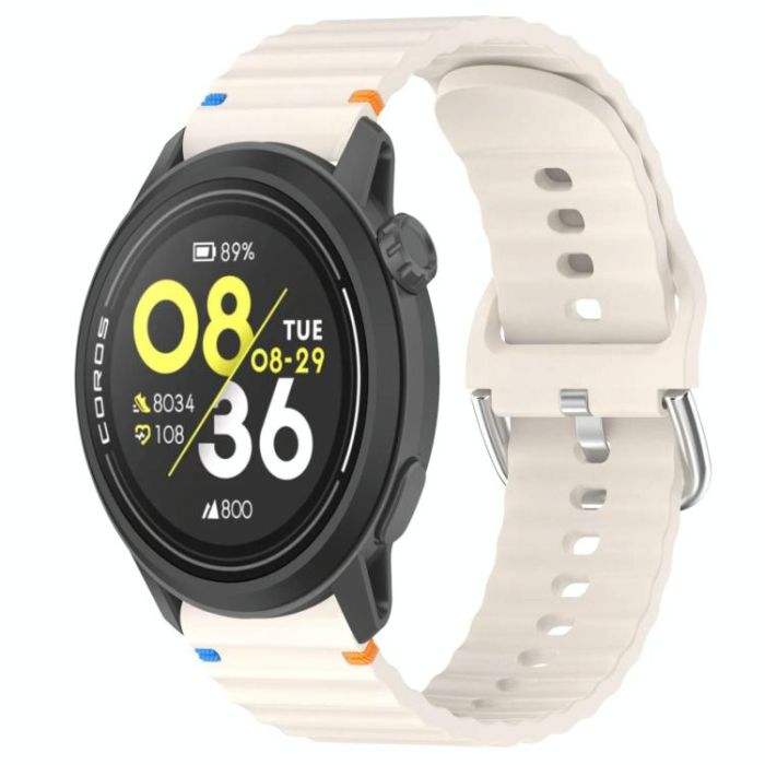 For COROS Pace 3 Wavy Grain Stitched 22mm Silicone Watch Band(Starlight)