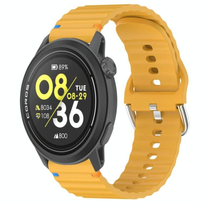 For COROS Pace 3 Wavy Grain Stitched 22mm Silicone Watch Band(Yellow)