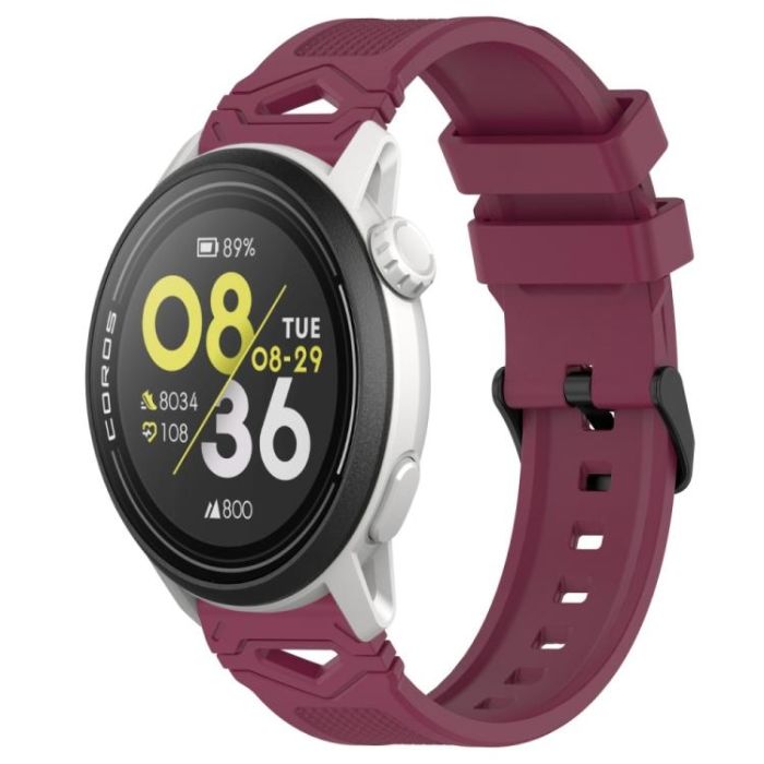 For COROS Watch 22mm Dotted Black Buckle Silicone Watch Band(Wine Red)
