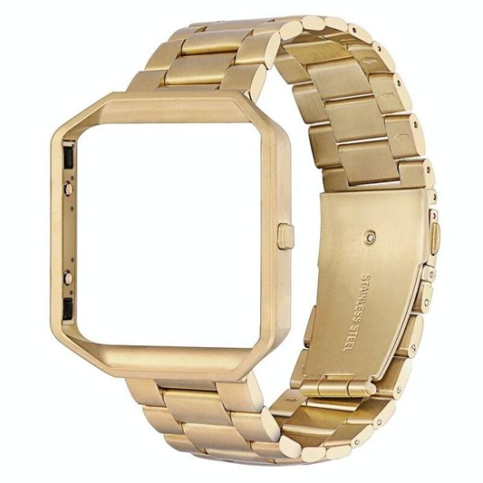 For Fitbit Blaze Metal Frame Butterfly Buckle Three Beads Stainless Steel Metal Watch Band(gold)